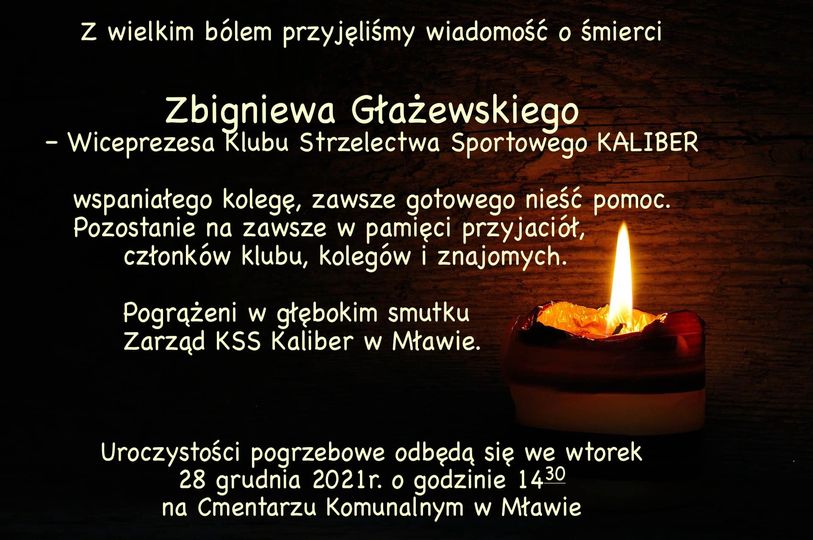 Zarząd Stowarzyszenia zawiadamia, że w dniu 19 marca 2023 (niedziela) o godzinie 11.00 odbędzie się Walne Zebranie Sprawozdawczo Wyborcze Członków Klubu Strzelectwa Sportowego "Kaliber" w Mławie.