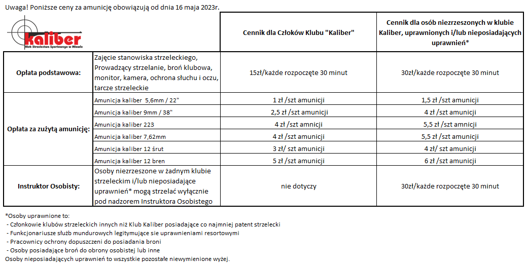 Kwiecień 2023: Przedstawiamy nowy, nizszy cennik strzelań: