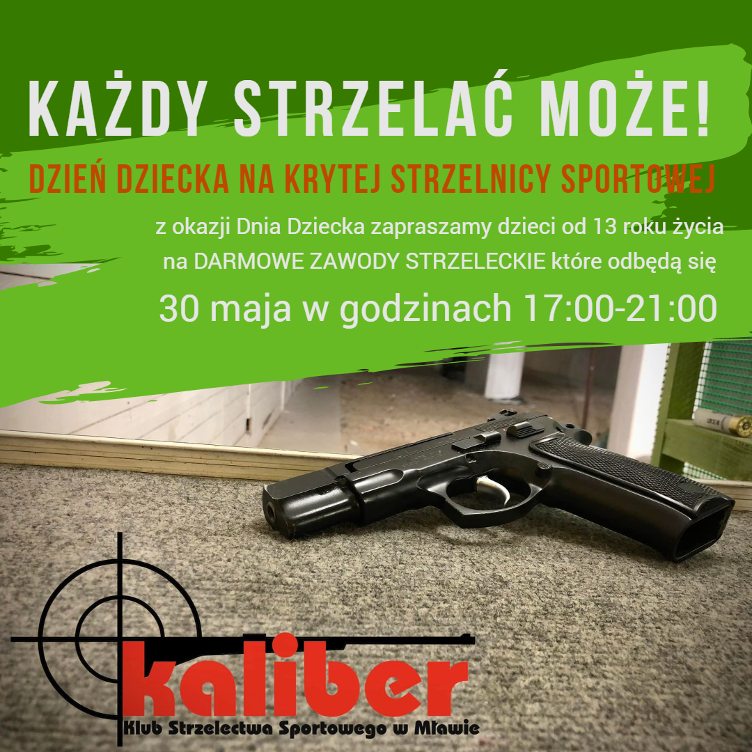 Z okazji Dnia Dziecka serdecznie zapraszamy na darmowe strzelanie w Klub Strzelectwa Sportowego Kaliber Mława już 1 czerwca na strzelnicy przy ul. Zuzanny Morawskiej 29 w Mławie w godzinach 10.00 - 14.00