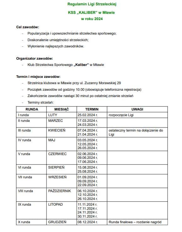 Informujemy, że termin Letnich Mistrzostw Klubu Kaliber został zmieniony. Mistrzostwa, które miały się odbyć 6 lipca 2024, zostały przeniesione na