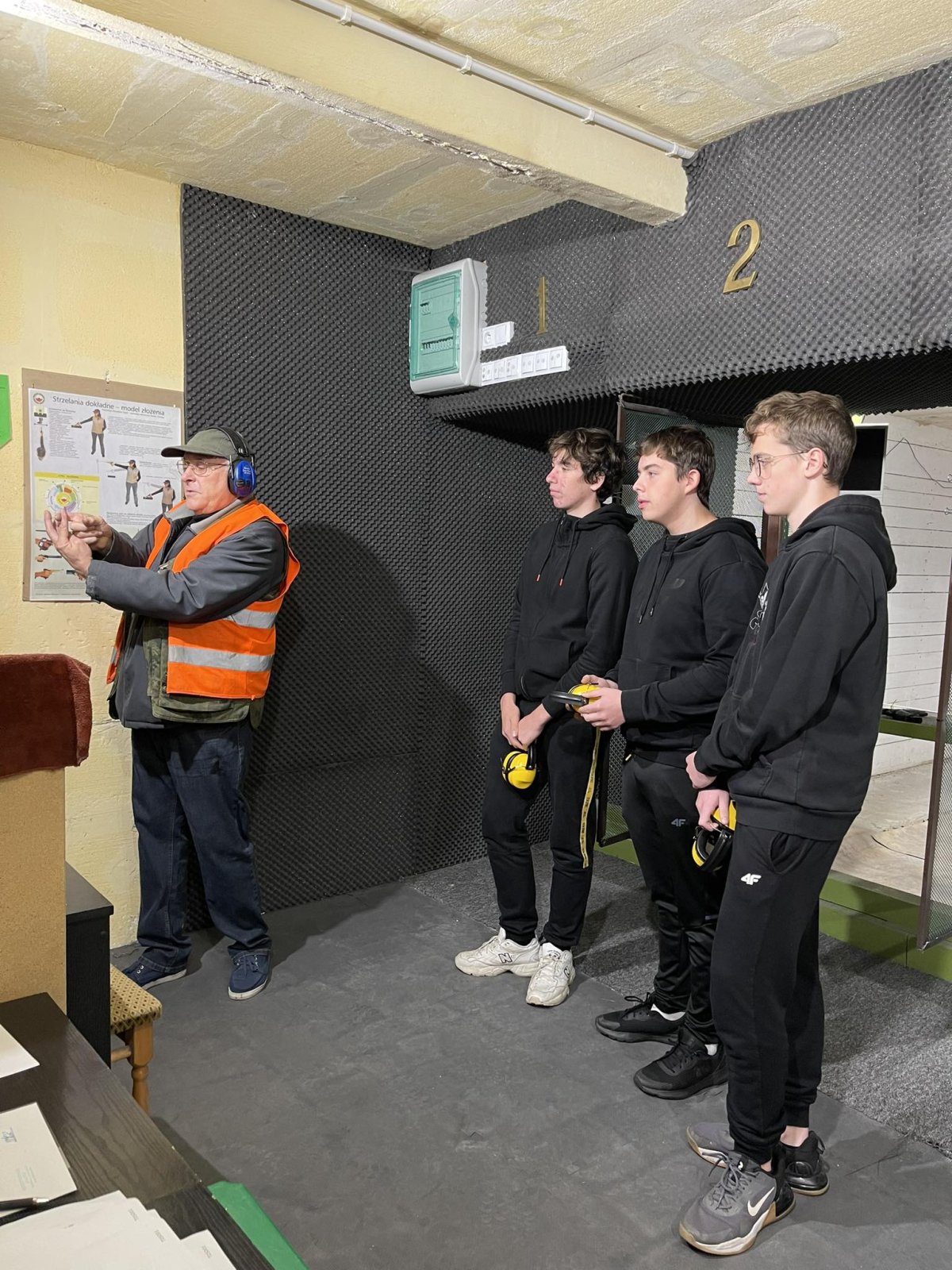 W dniach od 23 do 25 października 2023 uczniowie Zespołu Szkół nr 1 w Mławie wzięli udział w szkoleniu dotyczącym bezpieczeństwa i obsługi broni oraz mieli okazję skorzystać ze strzelnicy Klub Strzelectwa Sportowego Kaliber Mława i wziąć udział w zawodach strzeleckich. W zajęciach wzięły udział trzy 18-osobowe grupy z klas: II TP, II TE, II TI, III TR, IV TR i V TB.